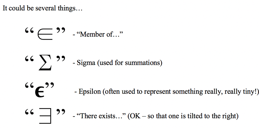 Equal by definition := equal by definition: More advanced meanings are included with some symbols listed here. These elements could be numbers, alphabets, variables, etc. E.g., you might see math\hat {a} /math, which i would read as " matha /math hat". Jun 23, 2021 · summation sign: